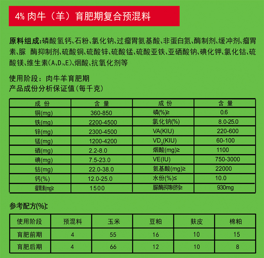 下一條:4%肉牛羊育肥期復(fù)合預(yù)混料
